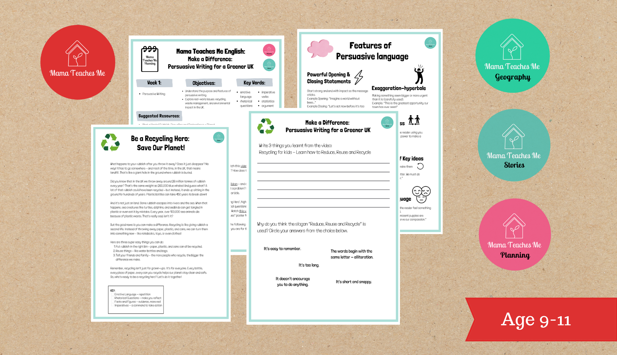 To bring their learning to life, we link the writing to an important cause: encouraging recycling at home. Children will craft their own persuasive pieces step by step, inspiring family and friends to take small steps that protect our planet. Also featuring samples of my daughters work - remember we try and test all our plans before we publish them showing you they work!