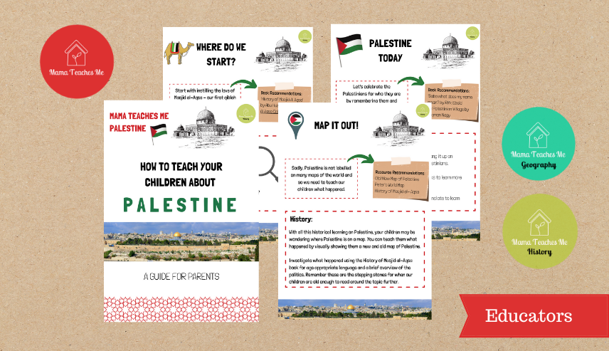 Download our How to Teach Your Children about Palestine Guide especially for parents on how to navigate the topic of teaching Palestine to our children. I’m giving you tried and tested ideas and activities I have been doing with my own children over the past few weeks or have done so last year. I’ve included the geography, history and culture of Palestine with a list of recommended books and resources for both children and even for the adults.